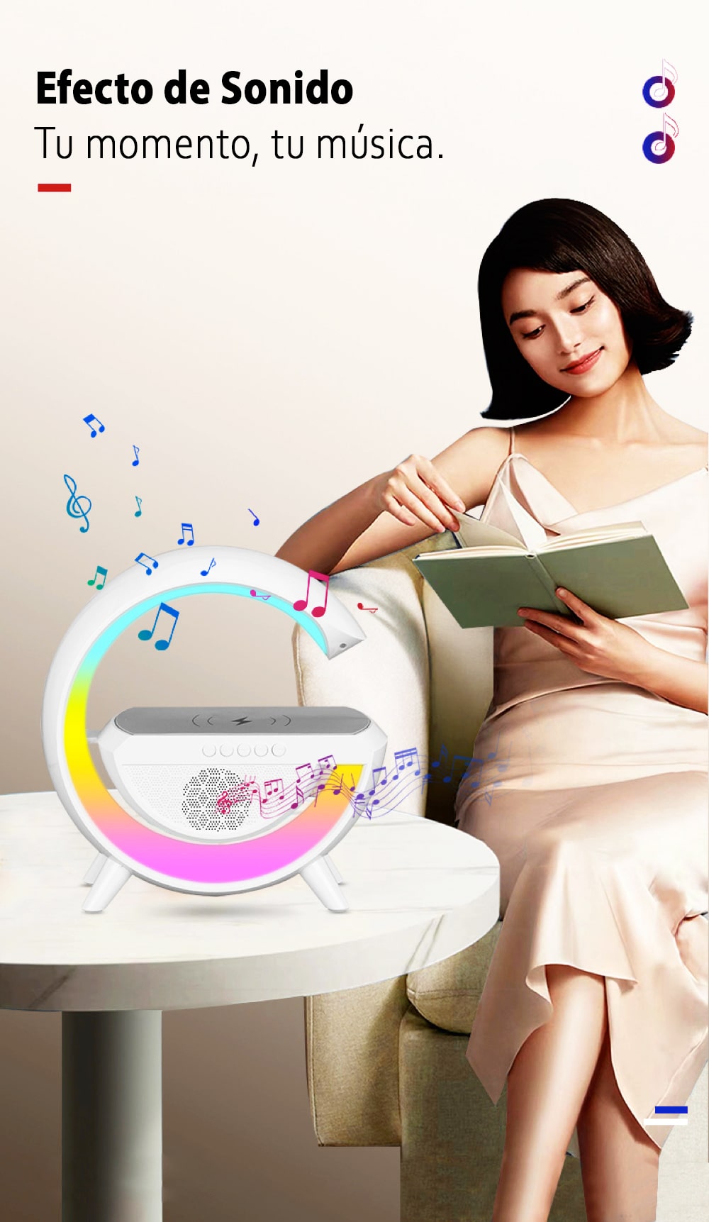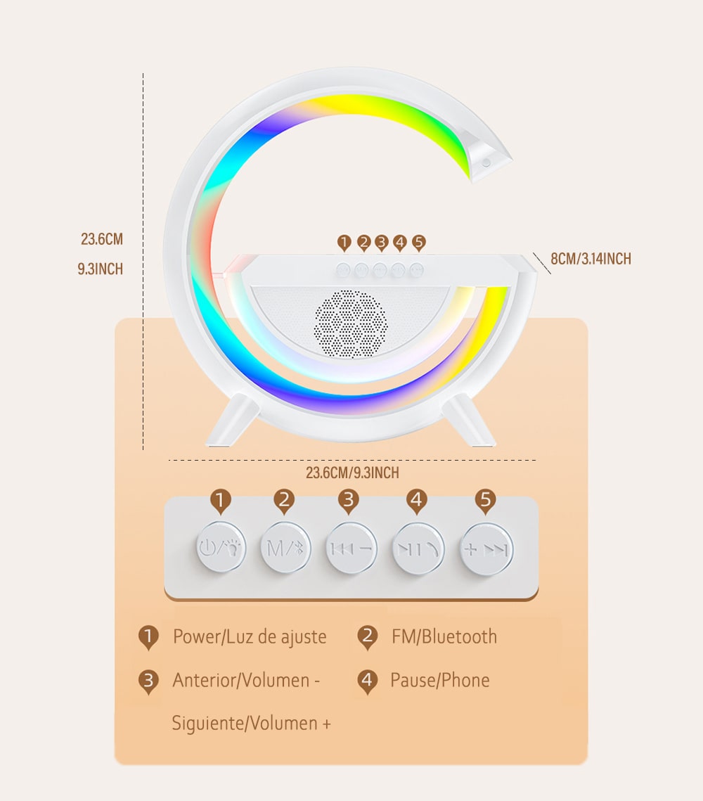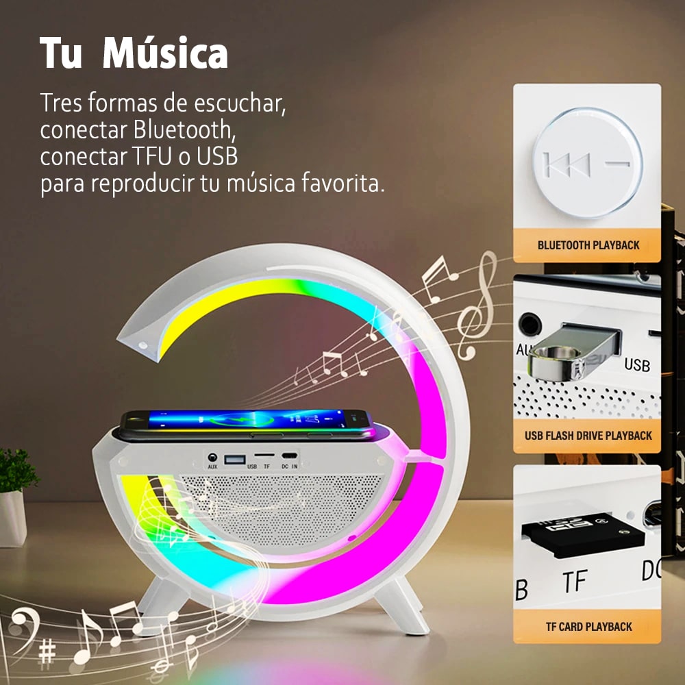 Parlante 4 en 1 inalámbrico, cargador, iluminación LED, bluetooth.